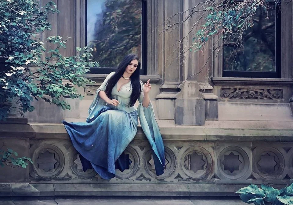 This gown is ombre dyed in a color of your choice with a base color of your choice. Only requirement is that the main color is lighter than your color you want it ombred to.